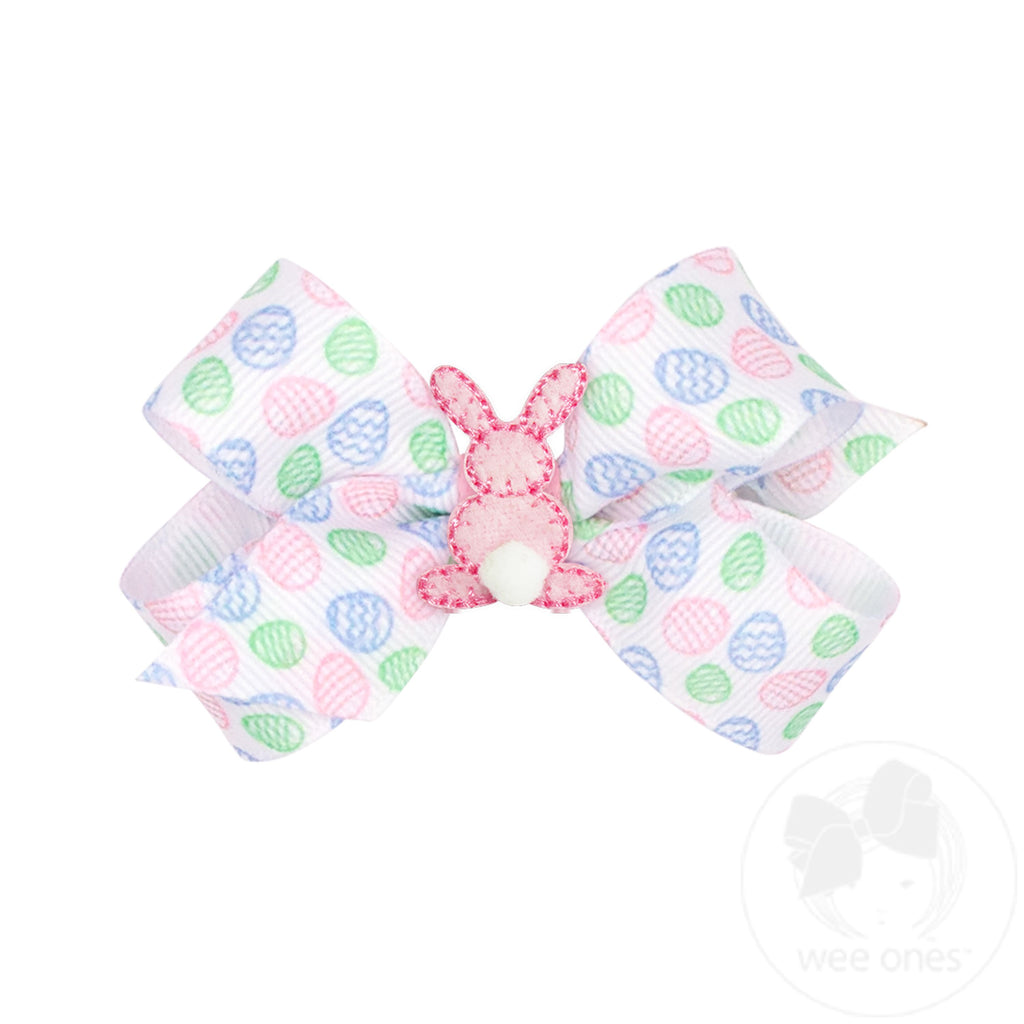 Mini Easter Print Hair Bow with Small Puff Tail Backside Bunny | Assorted