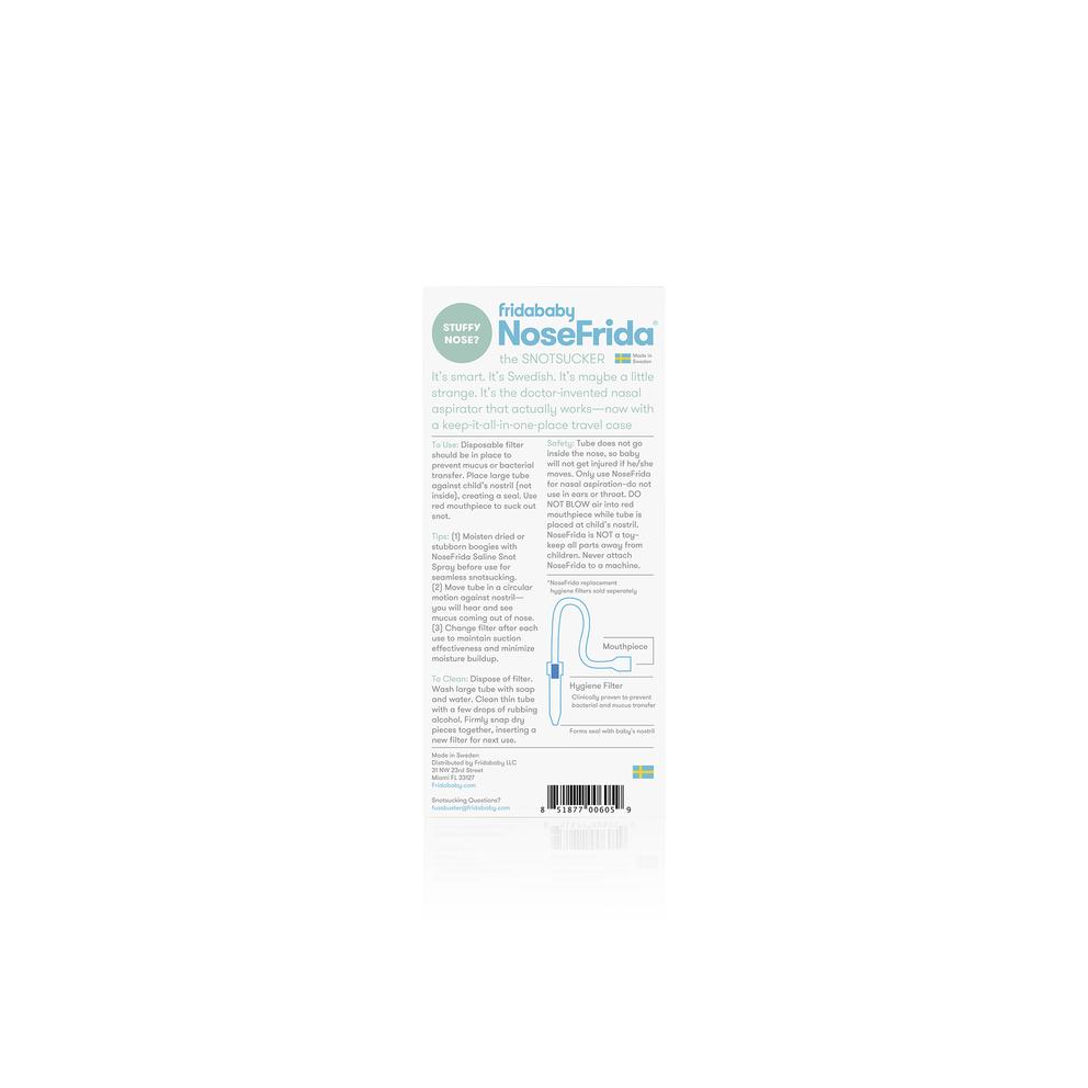 What's Inside? 1 NoseFrida Nasal Aspirator, 4 Disposable Hygiene Filters, and 1 Travel Case
