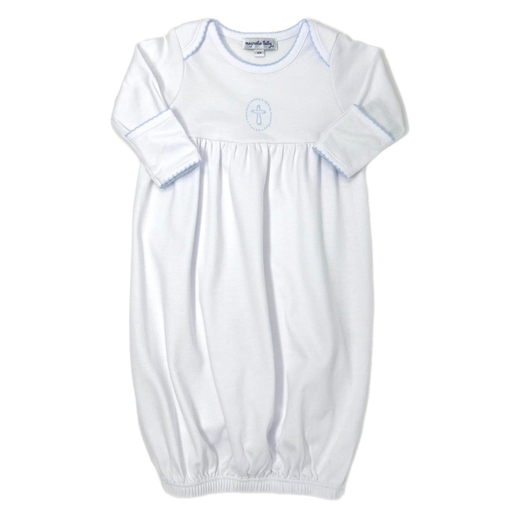 Love Lines Blue Organic Cotton Pointelle Magnetic Gown + Hat Set