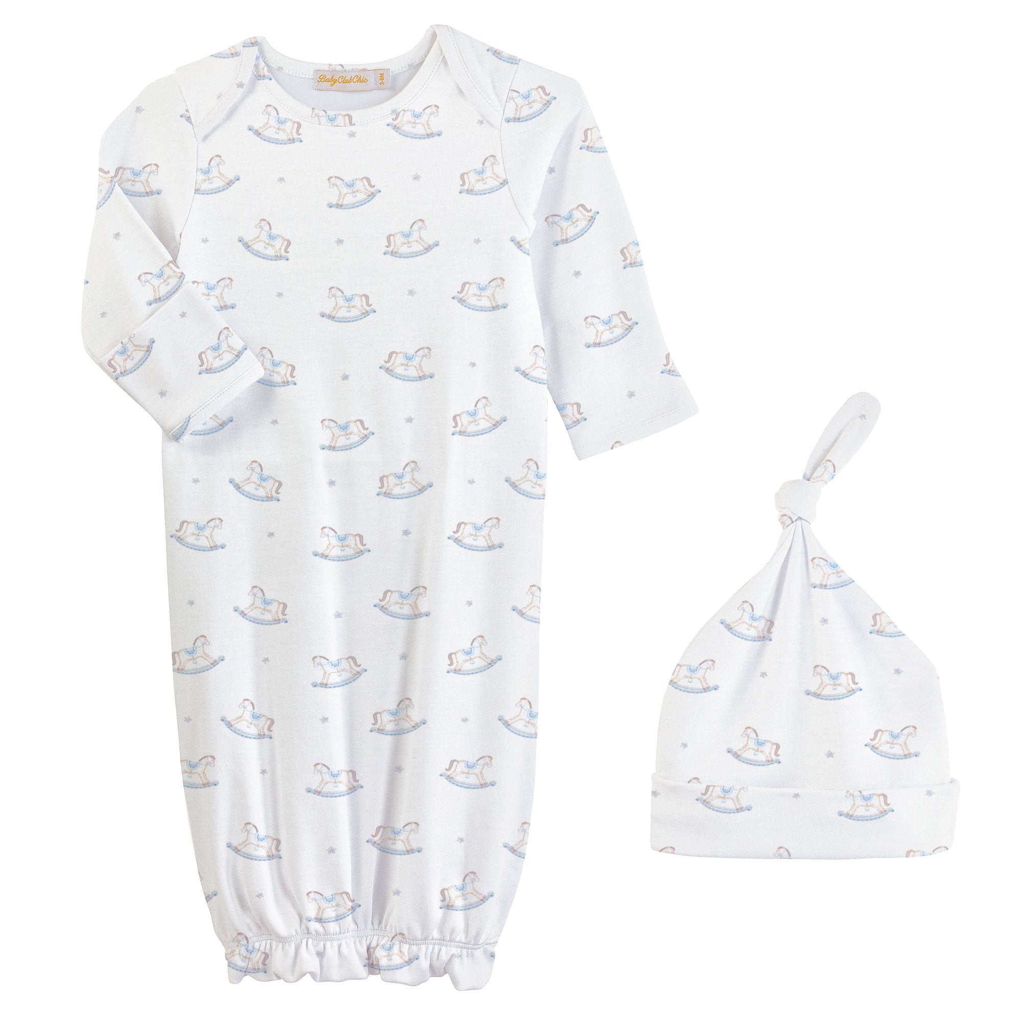 Tiny Rocking Horse Printed Gown and Hat Set