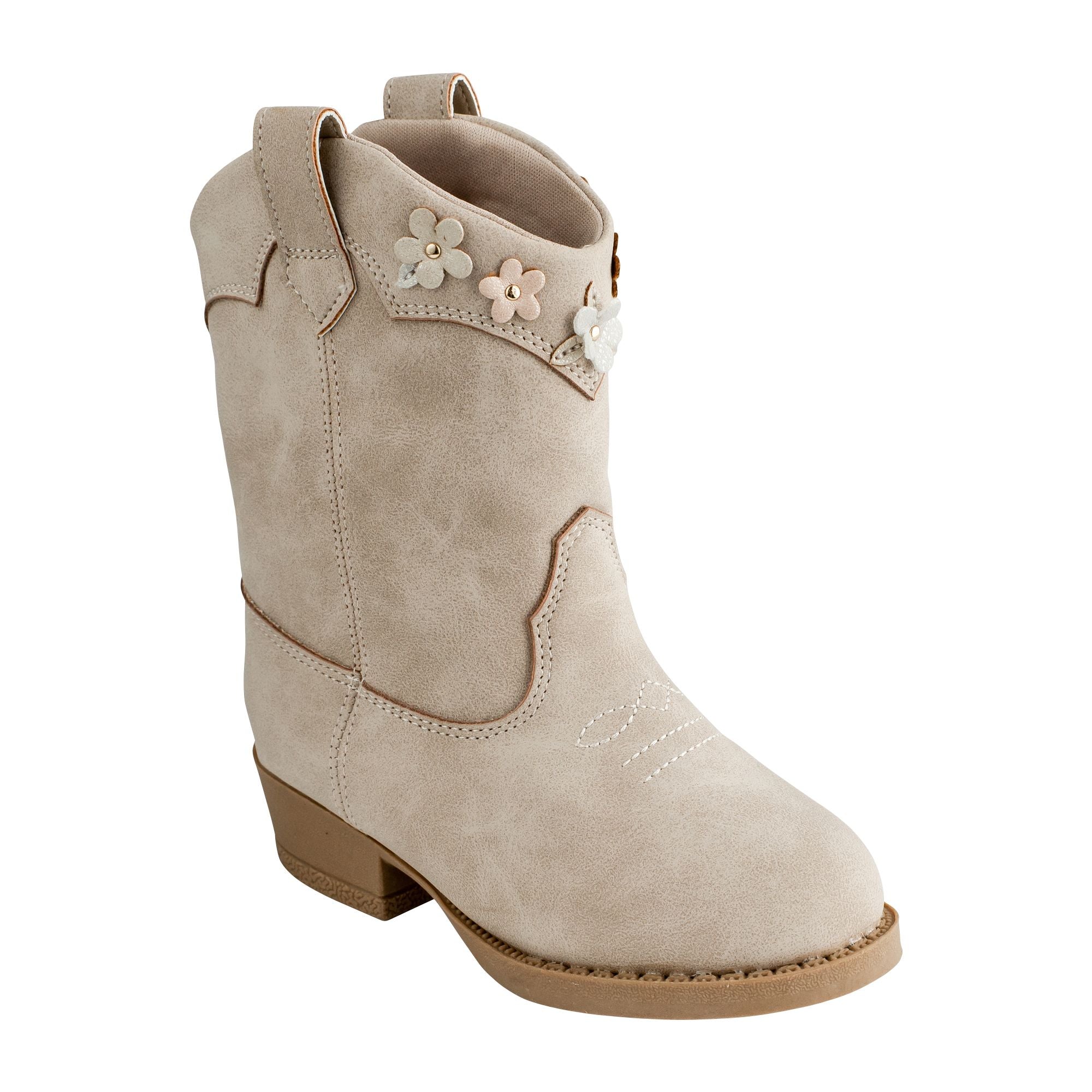 Mia Infant Distressed Western Boot | Taupe with Shimmer Flowers