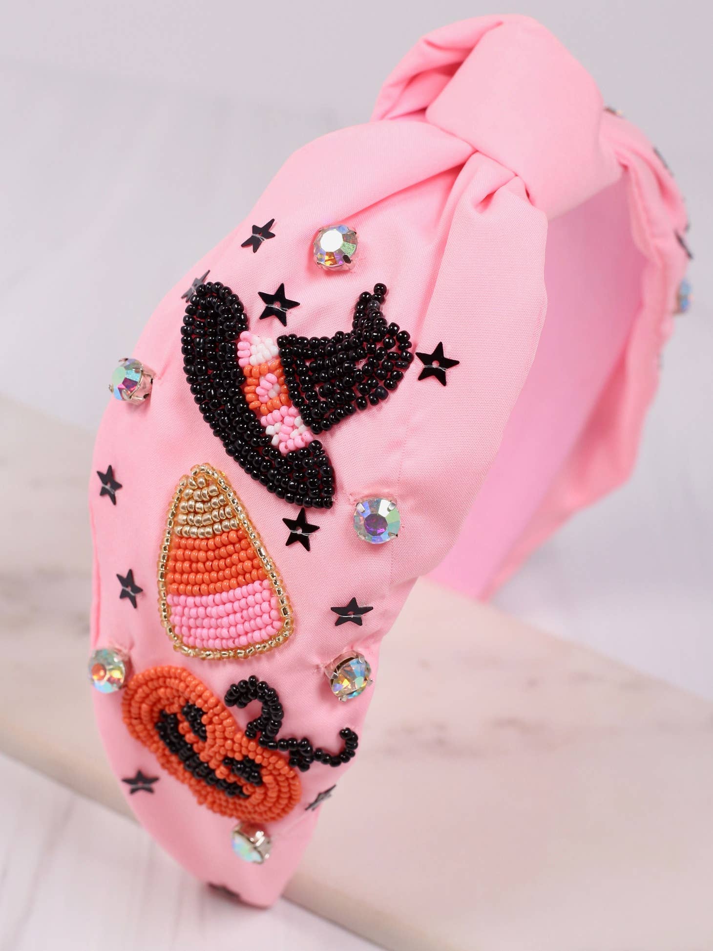 Light Pink Pearl and Rhinestone Bows Beanie with Fur Pom