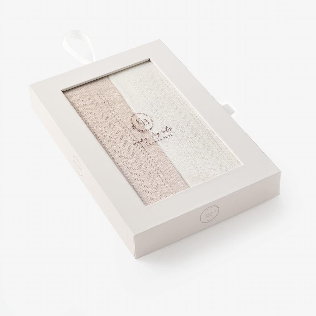 A versatile two-pack of pointelle tights in taupe and white, offering gentle warmth and a refined finish to any outfit.