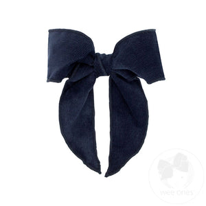 This Corduroy Bowtie with Twisted Wrap and Whimsy Tails, 4 1/2 inches, is the perfect accessory to give your little one an extra dose of cuteness! From the eye-catching corduroy fabric to the whimsical bow tails, this piece is sure to make her hair day extraordinary! Now that is something to bow down to! This bow is sure to stay in her hair all day with our patented WeeStay™ no-slip hair clip.
