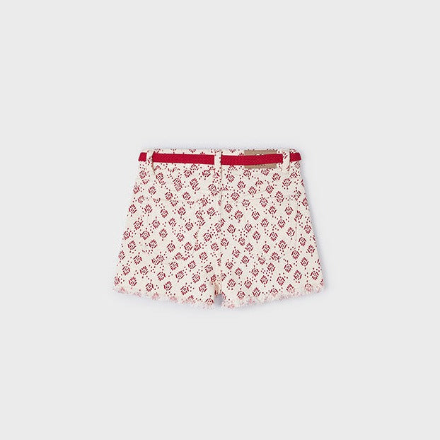 Girls Raw Edge Print Shorts with Belt | Natural Red