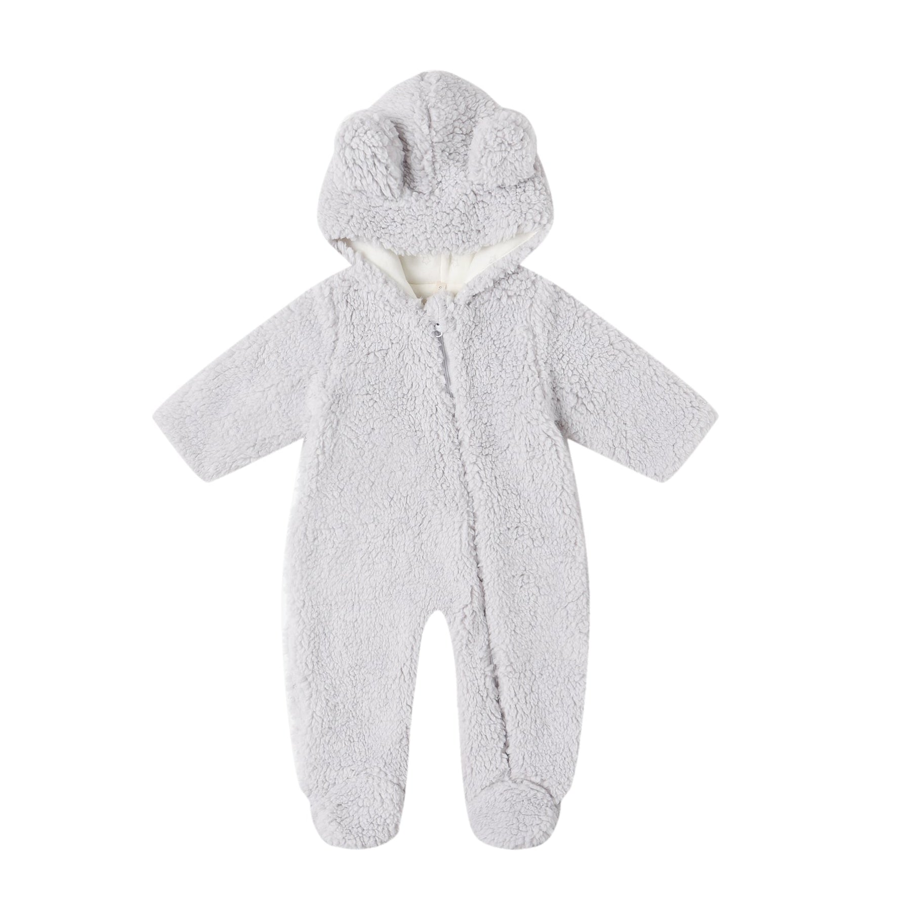 Keep your little cubs warm and cozy in this Bear Jumpsuit. Front zip for easy changes, faux fur on the outside and a soft jersey liner on the inside, this jumpsuit is made for the coziest of cuddles.