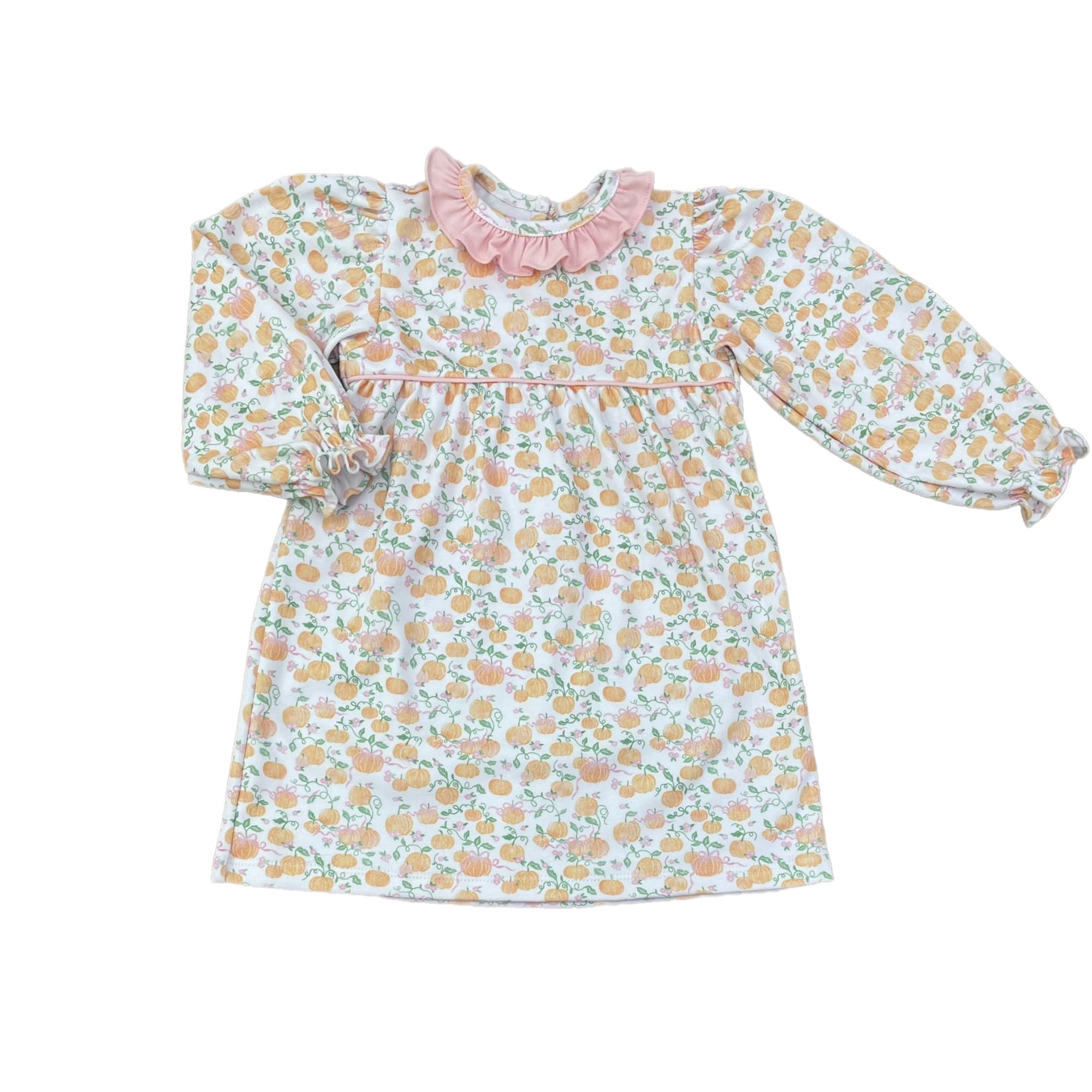 Pink Knit Christmas Wreath Smocked Short Sleeve Bishop Dress