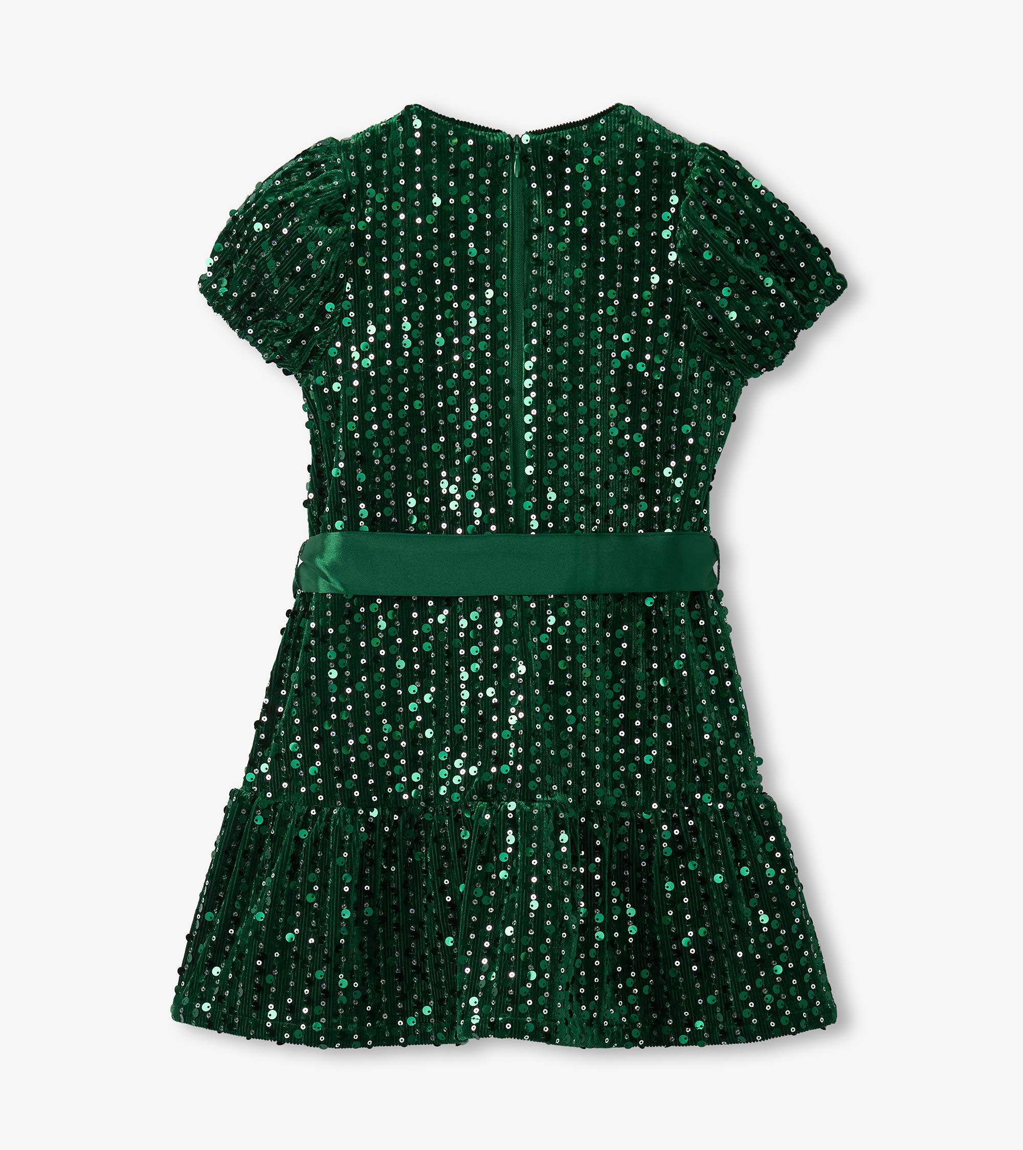 Green Corduroy Short Sleeve Red Bows Bishop Dress