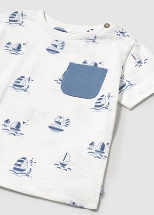 Short Sleeve Sailboat Print T-Shirt | Capri Blue