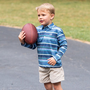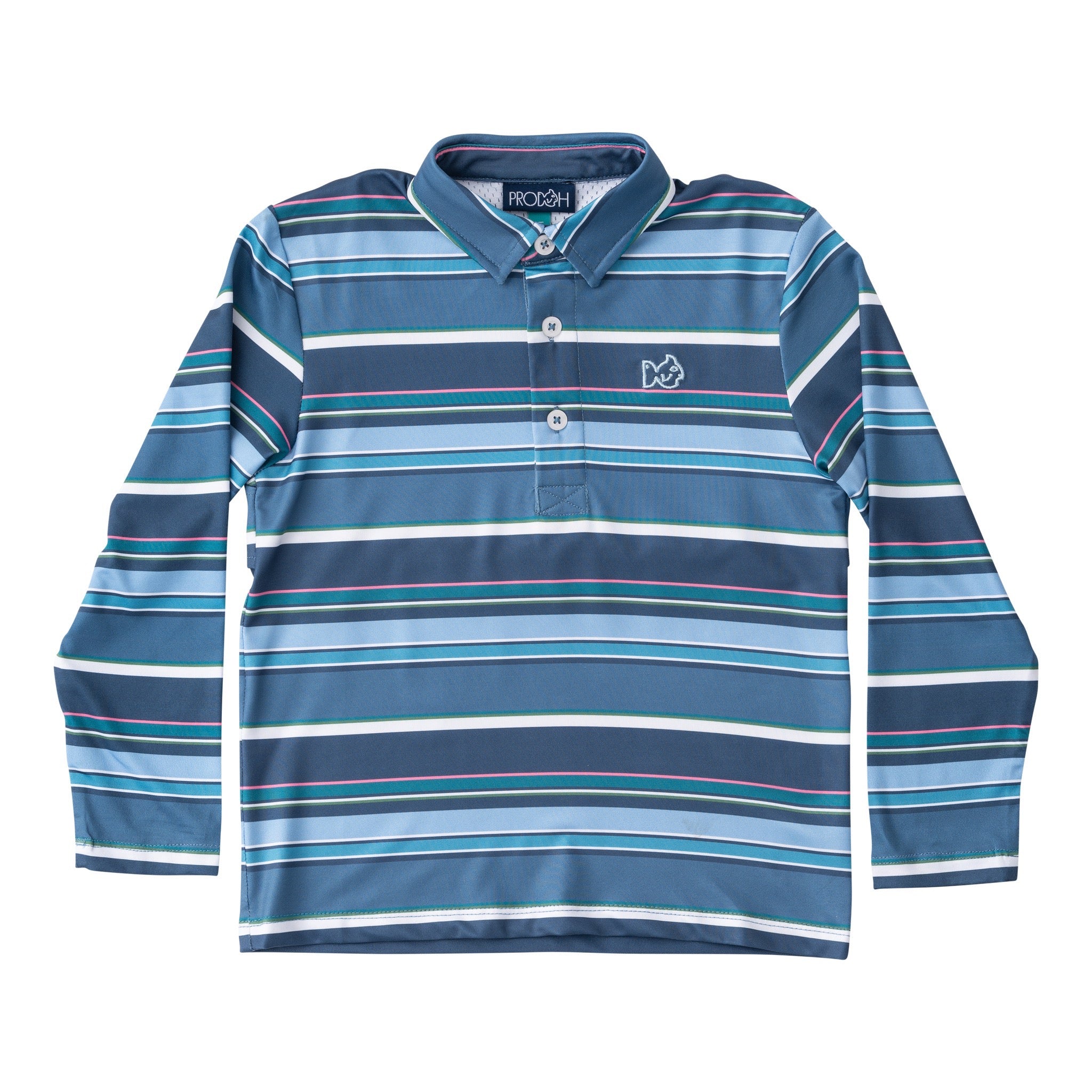 No matter the adventure, your boys will be ready in these fast-drying, UV-protective, boys' long-sleeve pro performance polo shirts in Big Dipper Sunset Vibes Stripe . Our boys' polos keep moisture out with wicking technology, breathable fabric, and the signature vented back. PRODOH polo shirts are perfect for golf, tennis, country clubbing, or cruising the coast.